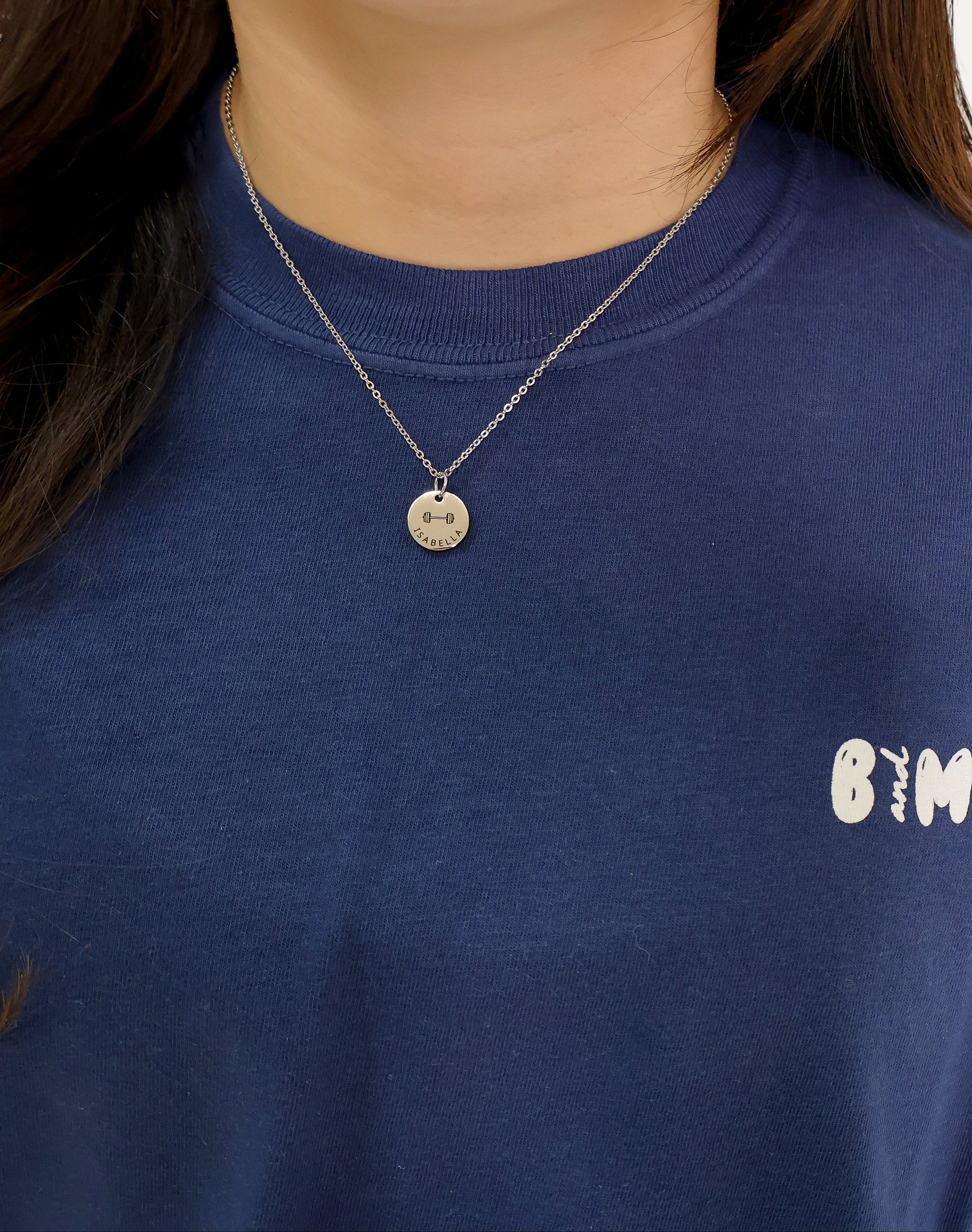Stainless Steel Barbell Personalized Necklace SILVER