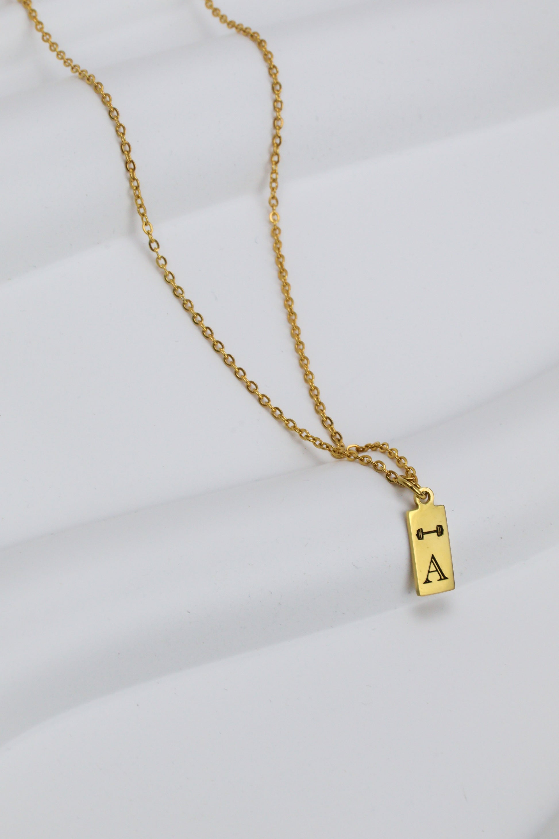 Stainless Steel Barbell Personalized Tag Necklace GOLD